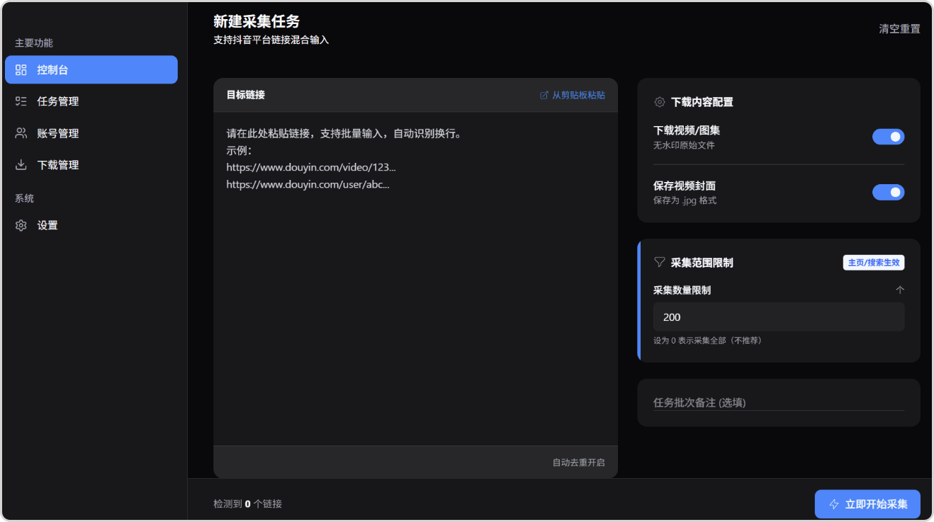 跟以往的解析软件不同的是采用解析任务队列模式 可以添加多次任务 会在后台依次解析并下载支持单作品和主页批量