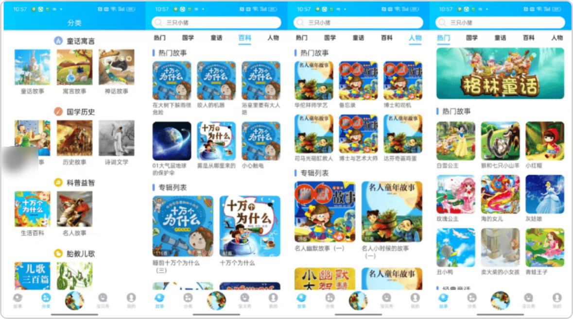 软件介绍】:海量故事全覆盖:格林童话、安徒生童话、伊索寓言、国学故事、历史典故、成语故事一站式集齐,2000+优质内容,满足宝宝所有听故事需求!纯净无广告体验:全程无弹窗、无推送、无广告打扰,给宝宝一个干净安全的听故事环境,家长更放心!无需登录直接用:打开就能听,不用注册、不用登录,零门槛上手,给娃讲故事超省心!有声+文字双模式:支持专业声优配音朗读,也可文字阅读,睡前听故事助眠,日常读故事提升阅读力,双重培养宝宝能力,分类清晰好查找:按年龄、主题分类,热门、国学、童话、百科、儿歌等板块一目了然,快速找到宝宝爱听的内容!