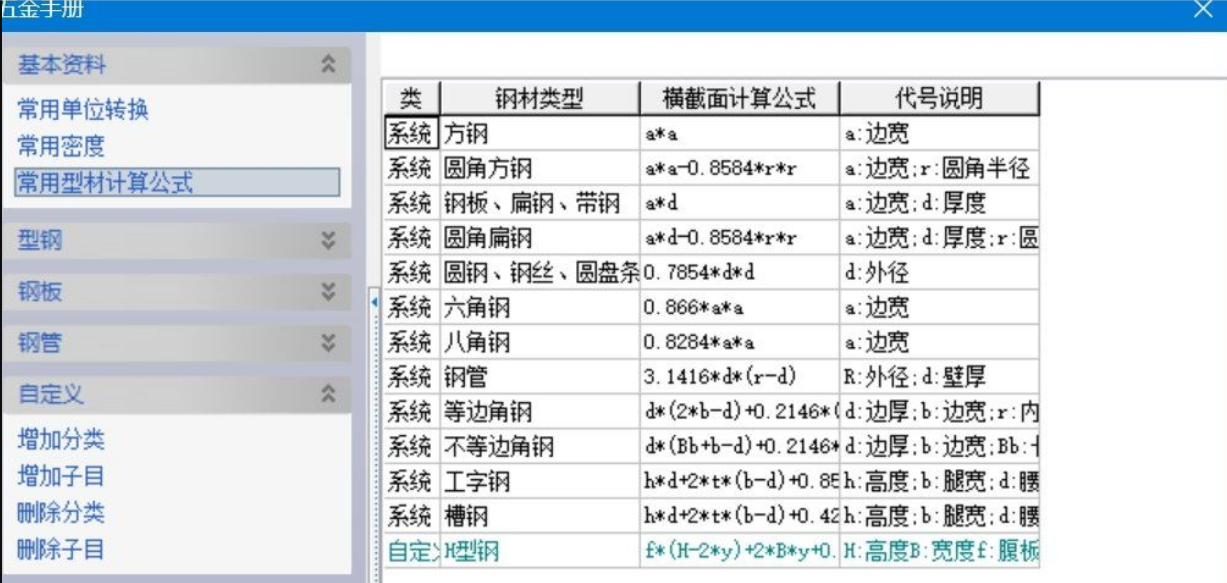 这是一款将单位换算,常用材料密度,常用型材计算公式,常用型材规格型号等集成到一起的实用五金工具,简单高效,这不仅是一个五金手册更是一个五金实用工具集。